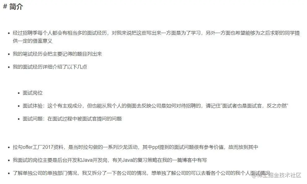 老夫整理的Java面经+题目(阿里、腾讯、头条、京东、IBM等等) 董嘉dongjia 2023-03-21 75 阅读1分钟 每年大厂校招的笔试和面试都会淘汰大批人,很多同学是由于细节性错误或者一时没想到更好的回答导致竞争失败,我整理了大厂的面试真题和答案,篇幅有限,有不对的地方或者更好的解答,也欢迎大家指正。 ** 点击此处 即可