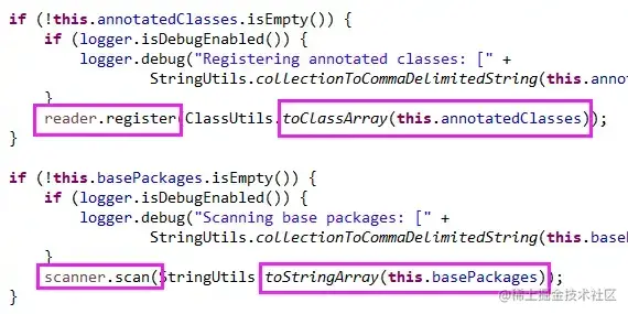 最后就是具体的来执行注册类和扫描包,如下图: