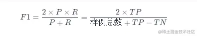 如果想要找到P 和R 二者之间的一个平衡点,我们就需要一个新的指标:F1 分数。F1 分数同时考虑了查准率和查全率,让二者同时达到最高,取一个平衡。F1 计算公式如下: