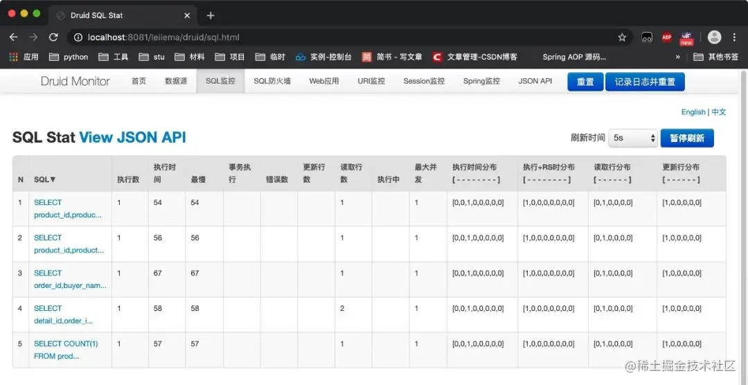 - SQL监控:监控所有执行的SQL语句,包括耗时,参数等等。