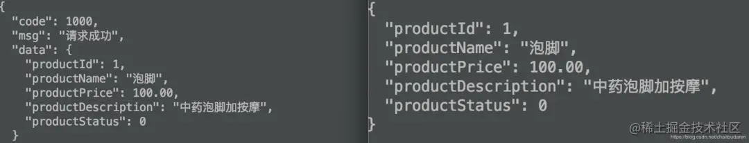 对比一下上图有什么区别?很简单,就是多了个状态码。有没有这个状态码似乎对前端请求的数据也没什么影响,不加状态码前端还是可以正常显示。确实,在核心数据上是不会有任何影响的,但是一旦出现一些业务异常,返回的数据就会如下图所示:
