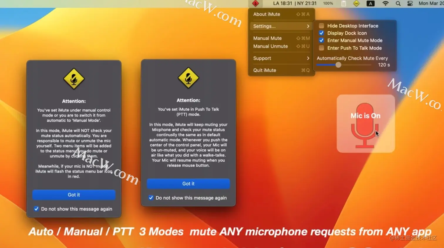此外,iMute 会每 2 分钟检查一次静音状态,以防止黑客试图访问您的麦克风。
