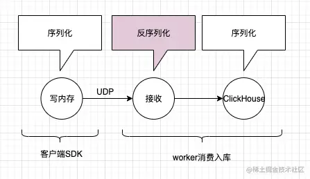 worker接收到之后,解析一下,写入自己的内存队列,再起数个异步线程,批量将队列的数据写入ClickHouse数据库即可。