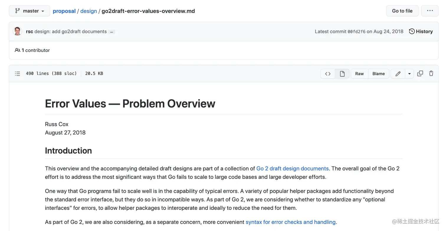 - 关联文章:先睹为快,Go2 Error 的挣扎之路