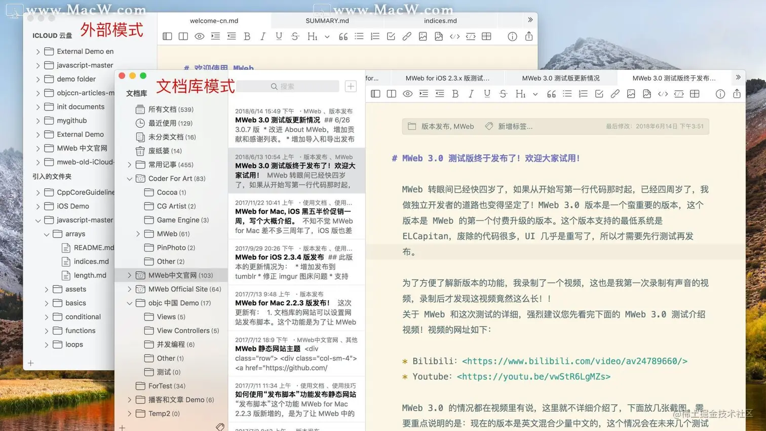 MWeb Pro 是一款专业的 Markdown 写作、笔记和静态博客生成器应用程序,适用于 Mac。它允许用户使用 Markdown 语言编写,并支持超过 140 种语言的语法高亮显示。MWeb Pro 还有一个内置的预览功能,允许用户查看他们的文档在 HTML 或 PDF 格式下的样子。此外,它还具有广泛的功能,例如表格、脚注、任务列表和图像大小调整,使其成为喜欢使用 Markdown 的作家和博主的有用工具。