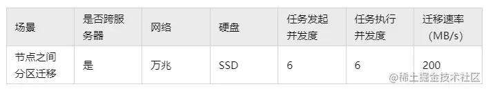返回结果:56秒。96个分区占用磁盘空间约14GB,节点内部再平衡时数据迁移速度约为250MB/s。