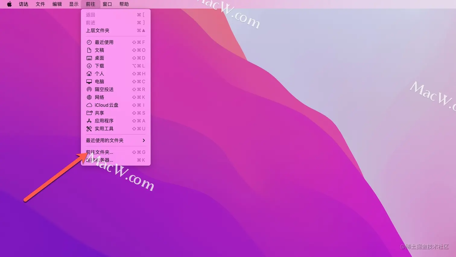 在访达中点击【前往文件夹】