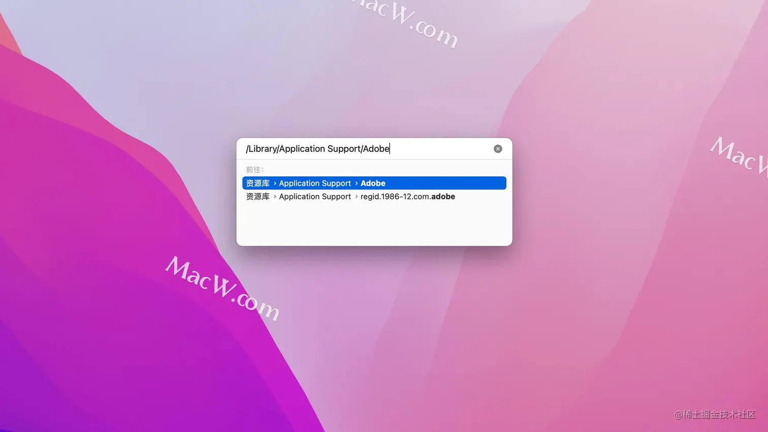 输入路径【/Library/Application Support/Adobe】,点击前往
