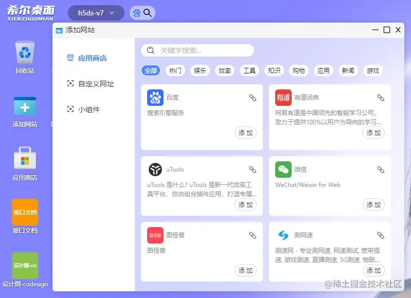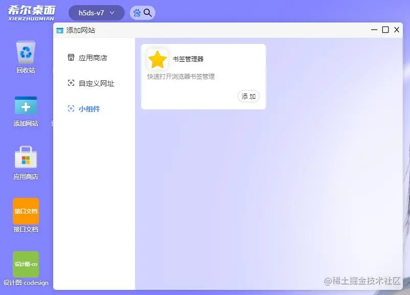 小组件模块内置了一些组件,例如书签管理,可以在浏览器扩展模式下把书签快速导入希尔桌面系统