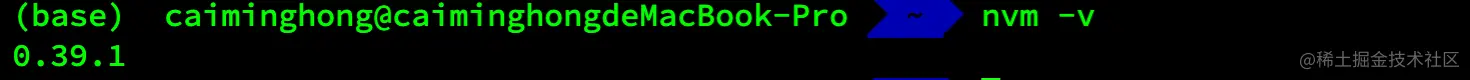 2.安装完成后关闭终端,重新打开终端输入 nvm -v 验证一下是否安装成功,当出现版本号时,说明已安装成功。