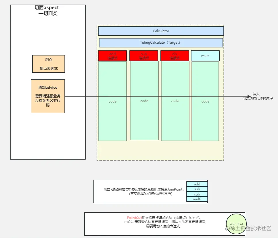 - Spring 提供了 AspectJ 的支持,但只用到的AspectJ的切点解析和匹配。