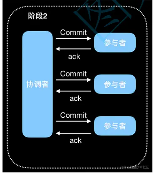 commit 请求 协调者向所有参与者发送 Commit 请求。