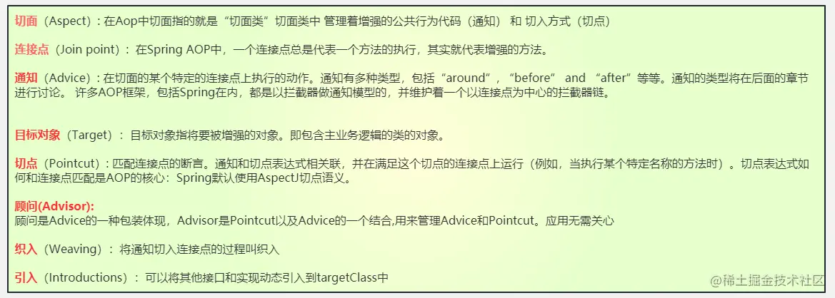 8.Spring AOP中aspect、advise、pointcut、advisor分别有什么意义?