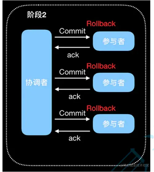 反馈结果 参与者执行事务回滚后向协调者发送 Ack 响应。