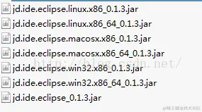 这些jar包,真对不同环境jar不一样,但是都需要jd.ide.eclipse_0.1.3.jar+你的环境是win32位还是64位,或者你是linux下面的eclipse开发环境对应的一个jar。