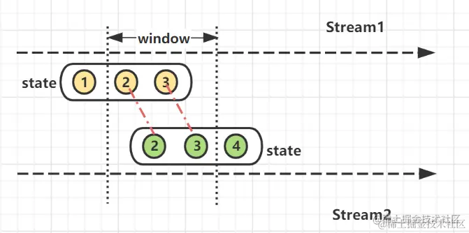 - 3)为每个进入的数据流保存state状态并创建定时器。在时间窗口内另一个流达到时进行join并输出,完成后删除定时器。
