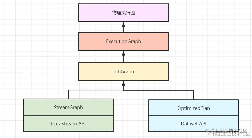 Flink中的执行图一般是可以分为四类,按照生成顺序分别为:StreamGraph-> JobGraph-> ExecutionGraph->物理执行图。