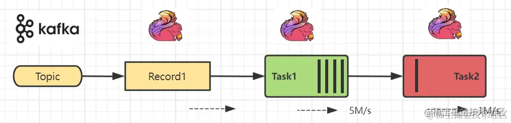 那我们怎么发现数据倾斜了呢?一般是监控某任务Job执行情况,可以去Yarn UI或者Flink UI观察,一般会出现如下状况: