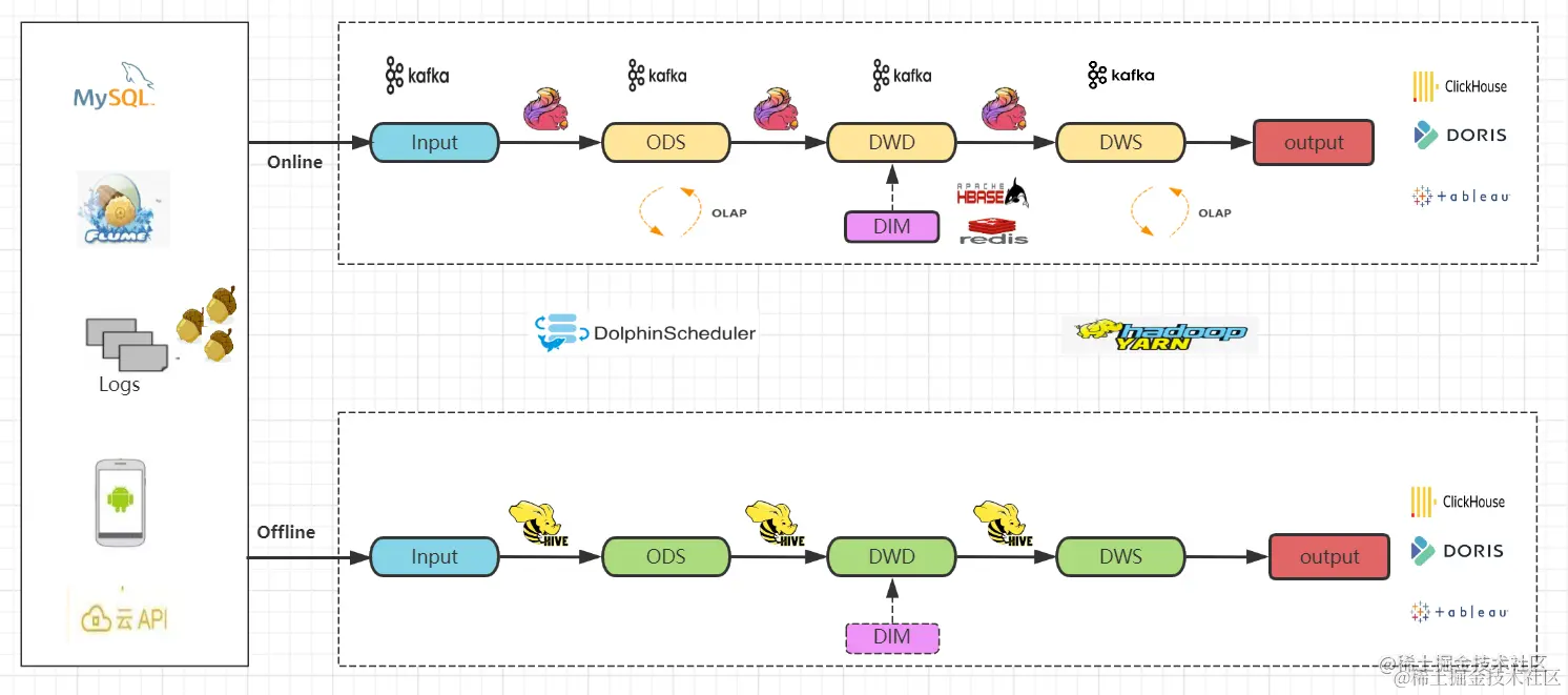 - OLAP查询(Kylin、Clickhous、ES、Dorisdb)等。