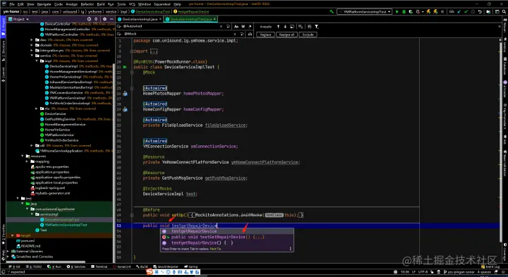 看完上面的就知道什么时候或者为什么要编写单元测试了。其他的我们不多说了,直接进入实战操作,这次使用的是springboot+Mockito框架,在最后会指出一些小技巧和bug。