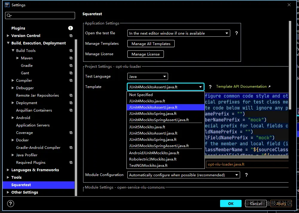 **idea插件:**Squaretest,帮助自动生成单元测试类。选择第二种使用。