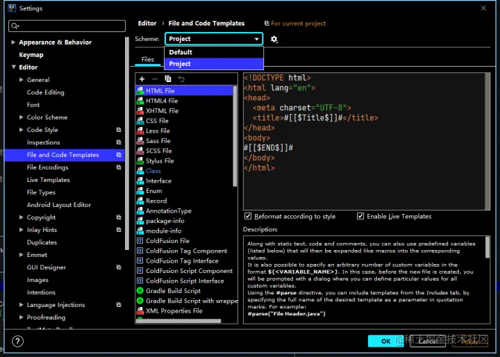 1.替换类生成模板直接复制粘贴即可,如果你长期写就选择Default,否则就选择Project