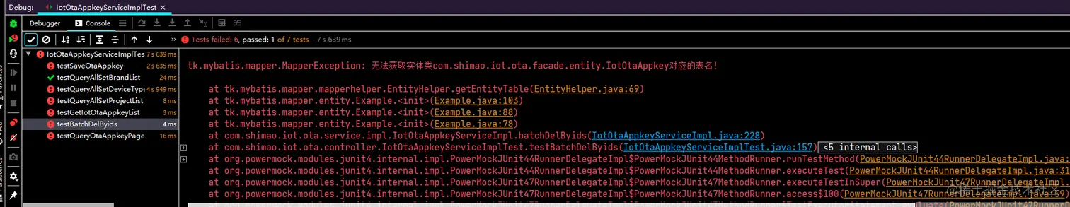 mock中模拟Mockito.when( 对象.方法名() ).thenReturn( 自定义结果 ),方法名()中参数有的人会使用实际的参数,这样会导致模拟是无法找到正确的结果。所以我们需要使用Mockito.any()去替代,让mock自己去模拟。以及thenReturn中返回的值要符合业务逻辑才能保证业务能够走通。参考:
