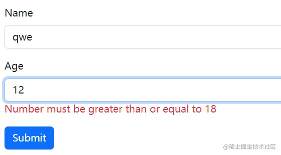 并没有对number输入值做required的验证,和数字是否大于18做验证,而是停留在输入的类型是string上。