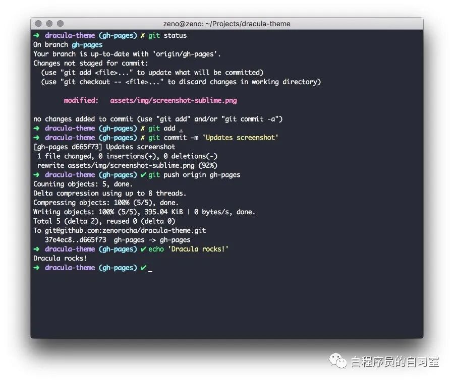 # 修改zsh主题。编辑~(用户名)下.zshrc文件,修改ZSH_THEME为"dracula"