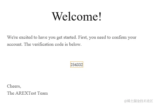 输入邮箱后,点击 Send Code 按钮, 稍后邮箱将接收到 AREX 发送的登录验证码,如下图,将验证码填入即可登录。