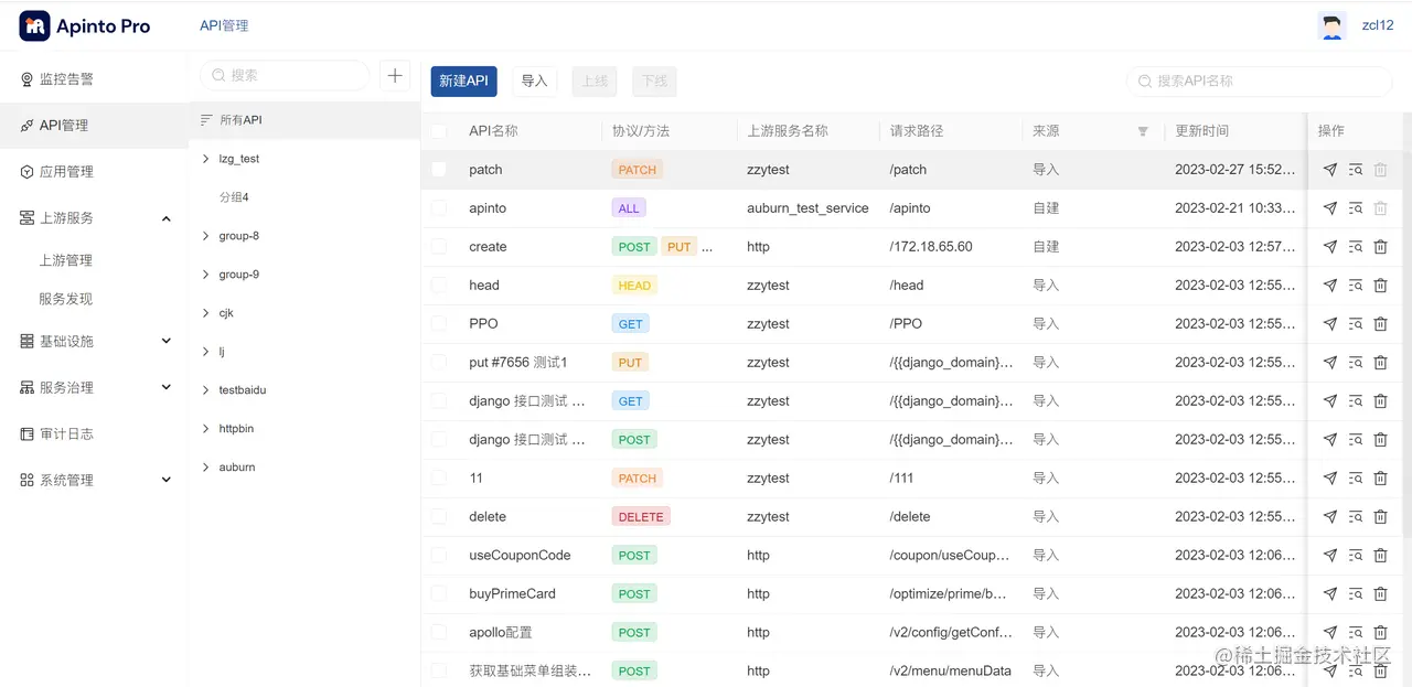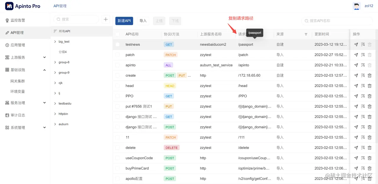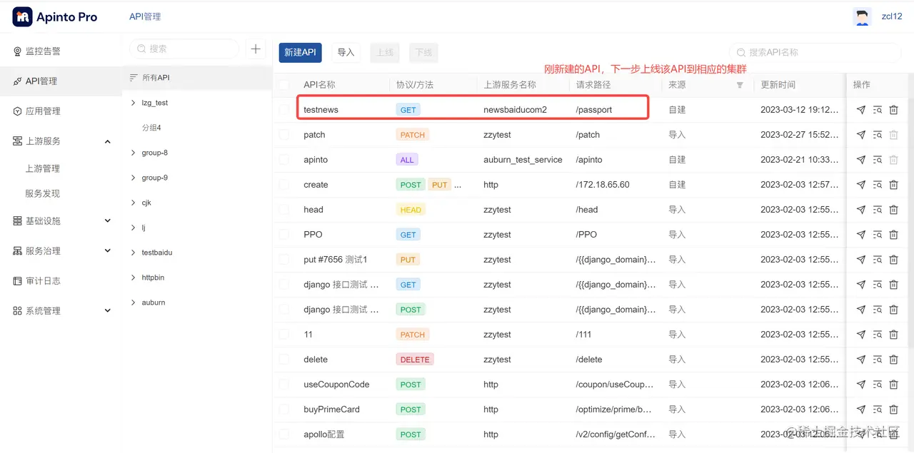 API管理是管理所有上游提供的API生命周期功能,提供按业务域分类管理、添加API、单个或批量API从不同集群上下线等功能。 第一步:点击左侧导航API管理,进入API管理页面: