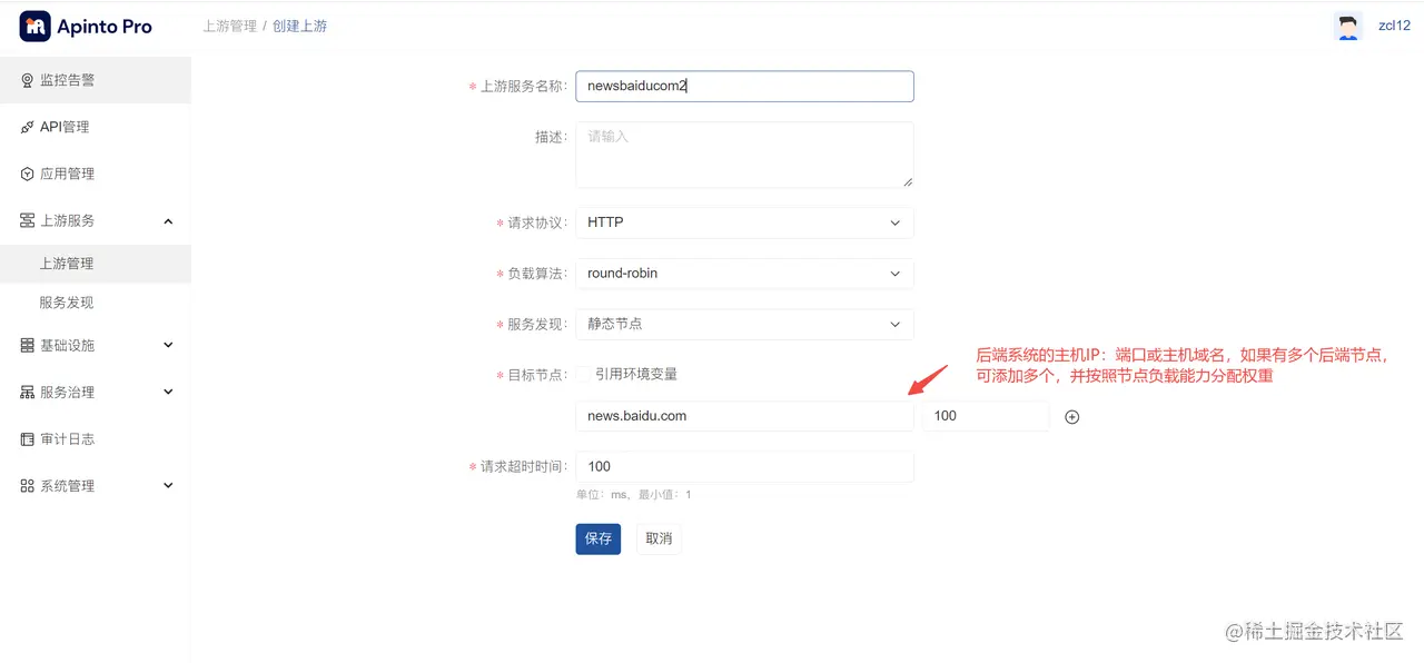 第二步:点击新建上游,我们以静态节点说明,配置如下图所示: