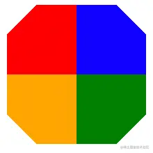 要切掉角上的颜色,其实也就是设置成透明 transparent 就行了,颜色本来也就有 transparent 这个色值属性,然后再根据斜切角大小设置一个大小,因为透明了,所以视觉上看着被切掉了。