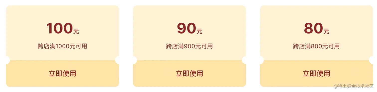 电商用的优惠券一般都带有内圆角样式,实现方式也有很多种: