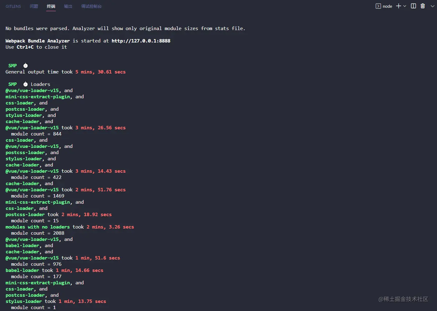 - 打包时间比较长的插件和loader:@vue/vue-loader-v15、mini-css-extract-plugin、css-loader、postcss-loader、stylus-loader、cache-loader