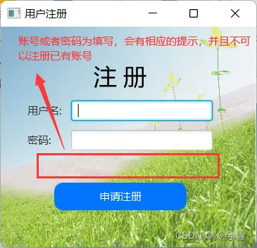点击确定,则会弹出下面信息,则该账号无法再次使用,需要重新注册,或者使用其他账号。接下来则会显示出 空白账号密码 的登陆页面