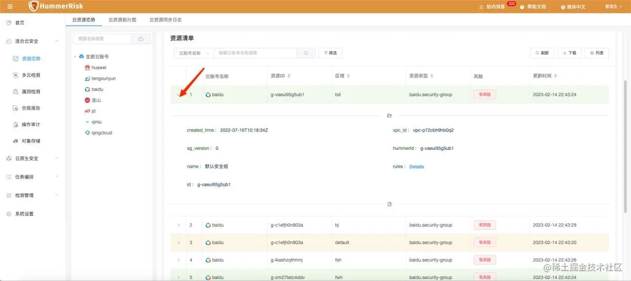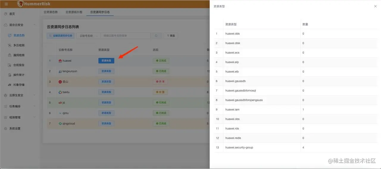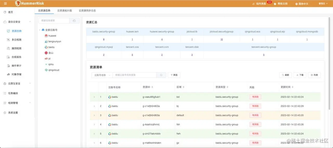 本文将介绍如何使用HummerRisk 中的资源态势相关功能,HummerRisk 中的资源态势在两个核心部分都有,所以我们也会分两部分来介绍相关的使用。