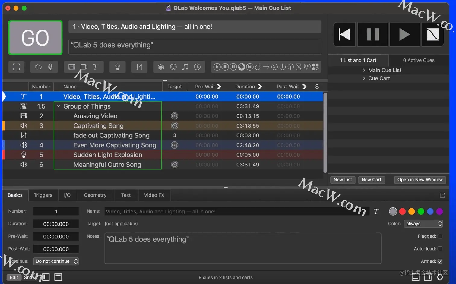 QLab Pro for Mac是一款mac音频剪辑软件,为用户提供用于创建、编辑和运行音频、视频以及戏剧表演、音乐会和其他现场活动的灯光提示的工具。