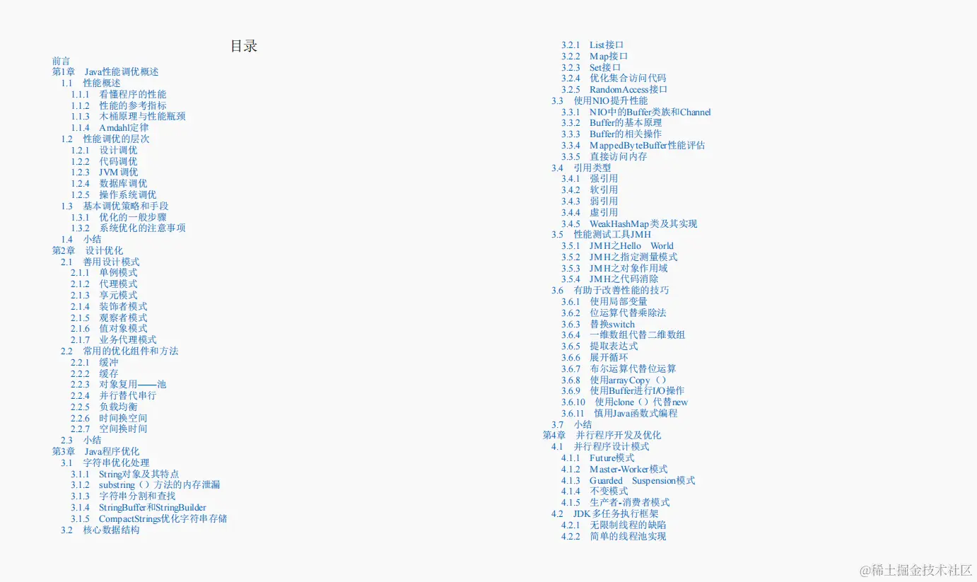 从代码层面介绍如何编写高性能的 Java 代码,涉及的主要内容有字符串的优化处理、文件 I/O 的优化、核心数据结构的使用、Java 的引用类型及一些常用的惯例。