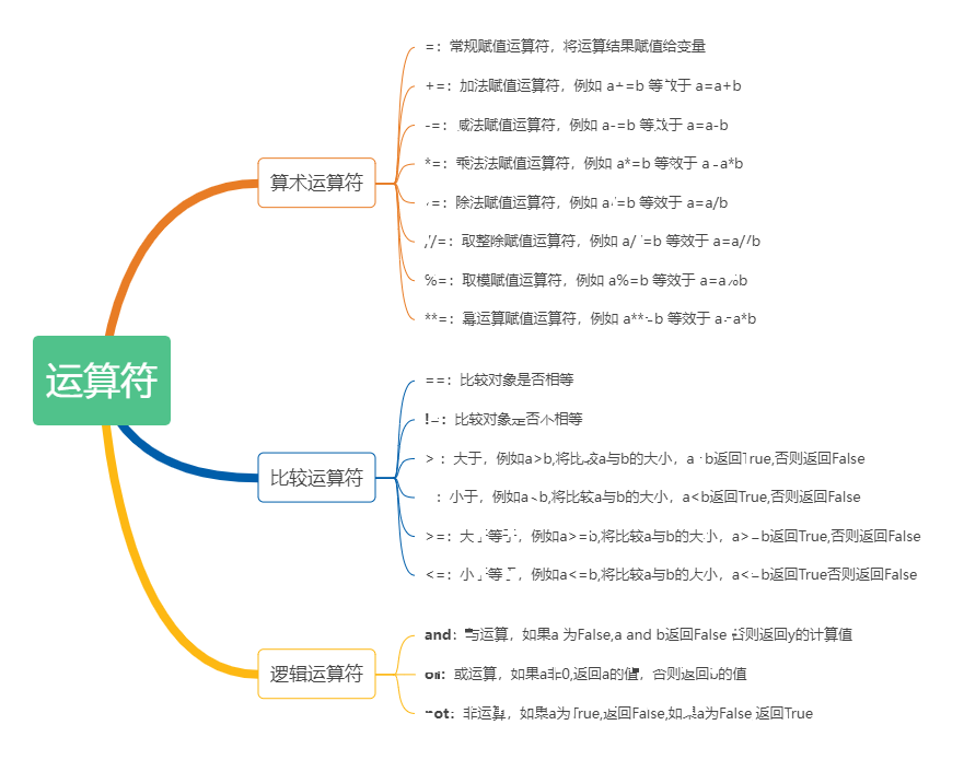 - 逻辑运算符:and、or、not等。