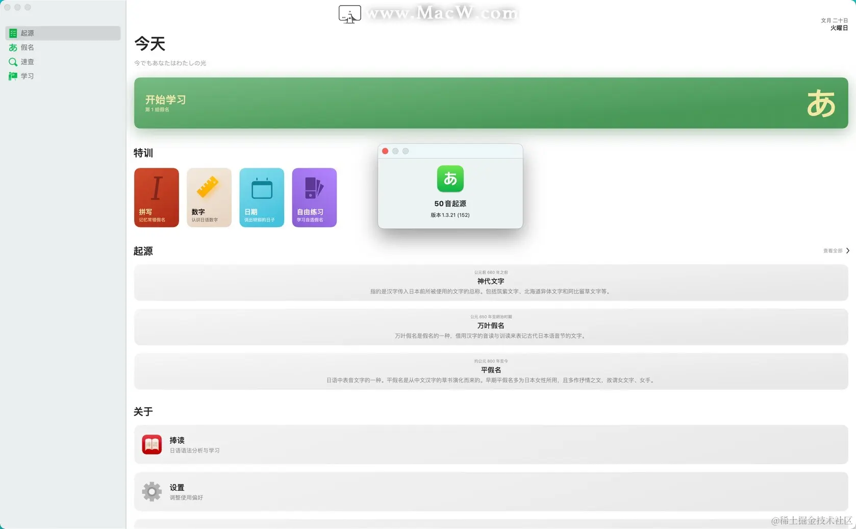 50音起源 Mac破解版是一款日语学习软件,在50音起源软件中你还能了解日文假名与汉字的渊源,体验多种记忆学习服方式等。