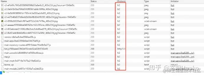 目前很多平台已开始使用HTTP2.0,如 知乎、淘宝、百度、谷歌、 github、掘金 等,可以打开F12看到协议这列为"h2"