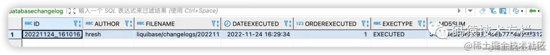 接着去数据库中看 databasechangelog 表记录