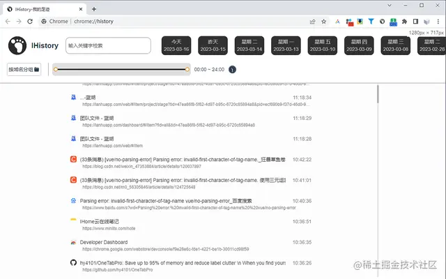 - IHistory 历史记录插件:这个插件可以帮助您轻松地管理和浏览您的浏览器历史记录。使用这个插件,您可以快速查找和打开您之前访问过的网页,甚至可以按照日期、关键词和网站名称来过滤历史记录。这个插件让您的历史记录变得更加易于管理和快速访问!