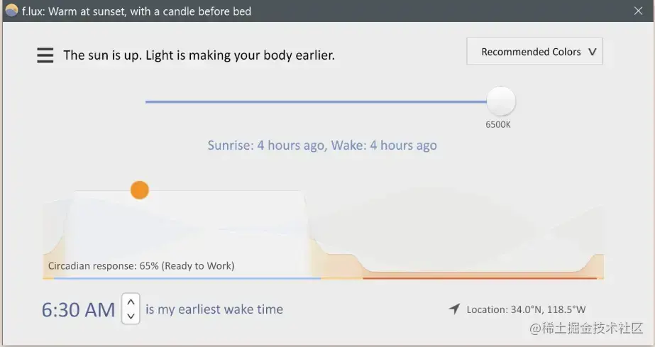 f.lux是一个免费的屏幕亮度调节工具,可以根据日出和日落时间自动调整屏幕色温,以减少眼睛疲劳和睡眠障碍。它可以根据您所在的地理位置自动确定日出和日落时间,并逐渐调整屏幕的色温,以适应自然光线的变化。