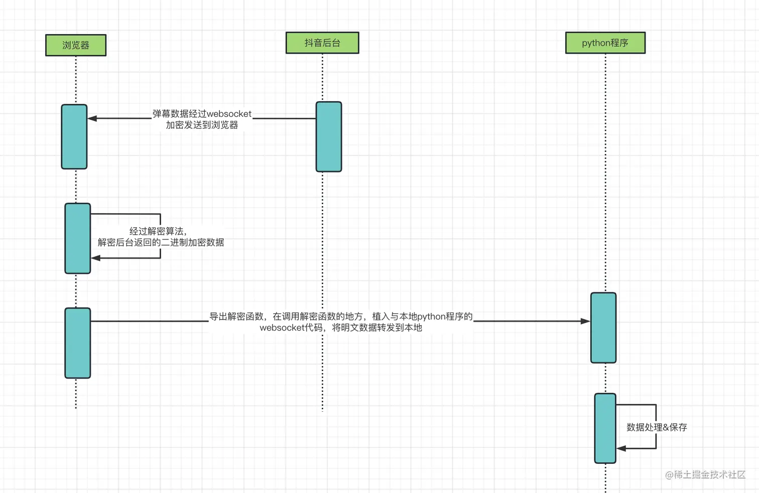 - 分析弹幕数据: 弹幕这种数据它的交互方式是这样,客户端可以发送弹幕数据,服务器端也可以推送所有人的弹幕数据(浏览器也不需要数据刷新,不需要向服务器重新发起请求),像我们通常用的http请求,只能做到客户端向服务器发送一次请求后,浏览器把相应数据给客户端; 我们可以看到抖音这里的