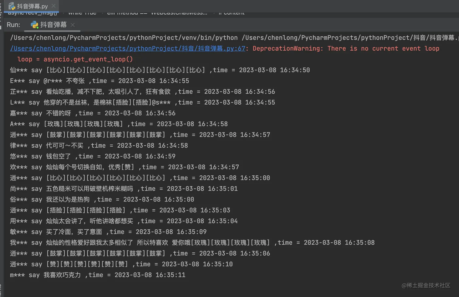 到这里可以看到东方甄选直播间的弹幕数据被我们劫持下来了,当然你也可以获取其他数据