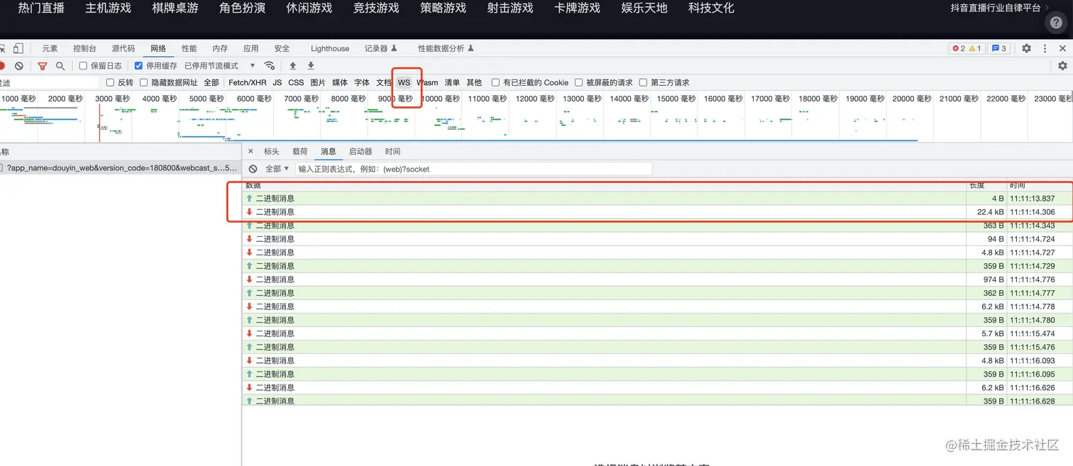 ws这一块,数据一直在实时变动,但是地址只有一直是一个,这里也就是我们的弹幕数据,也就是说,弹幕是在同一个websocket连接下进行数据传输的 - 这里先简单的介绍下websocket WebSocket 是一种在单个 TCP 连接上进行全双工通信的协议,它可以在客户端和服务器之间建立一种实时的双向通信机制。WebSocket 协议使得客户端和服务器之间可以持续地交换数据,而无需进行任何轮询或定时拉取。