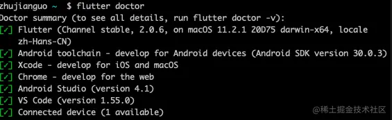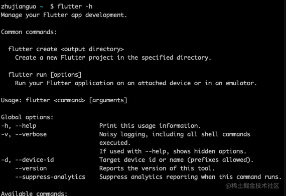 5.通过运行flutter/bin命令验证目录是否在已经在PATH中: