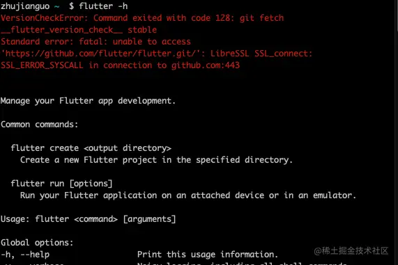 VersionCheckError: Command exited with code 128: git fetch __flutter_version_check__ stable Standard error: fatal: unable to access 'https://github.com/flutter/flutter.git/': LibreSSL SSL_connect: SSL_ERROR_SYSCALL in connection to github.com:443